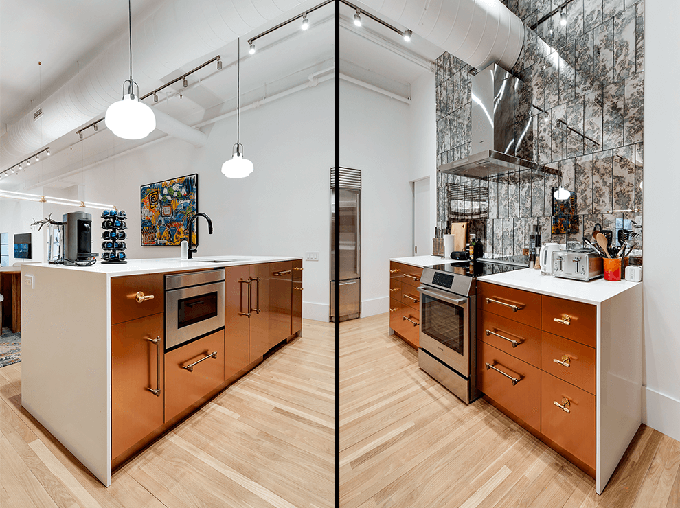 This 1,700 square foot two bedroom, two bath, SOHO loft was designed as an international pied de terre.