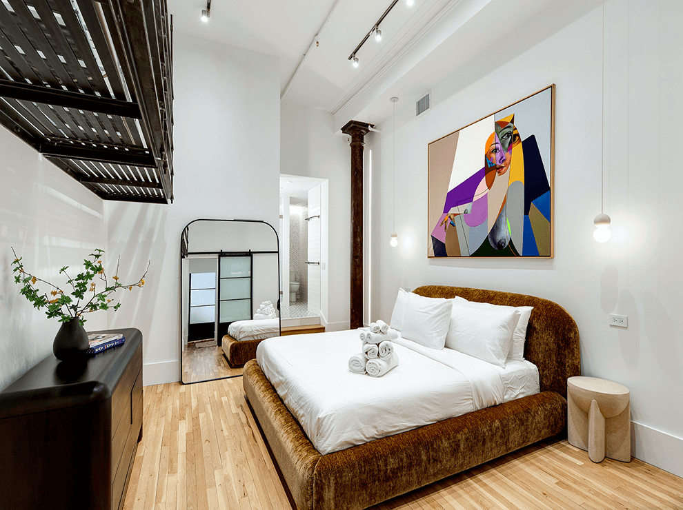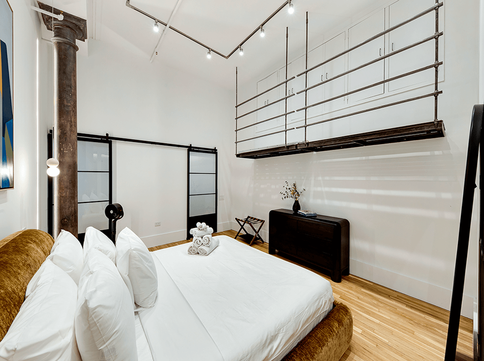 This 1,700 square foot two bedroom, two bath, SOHO loft was designed as an international pied de terre.